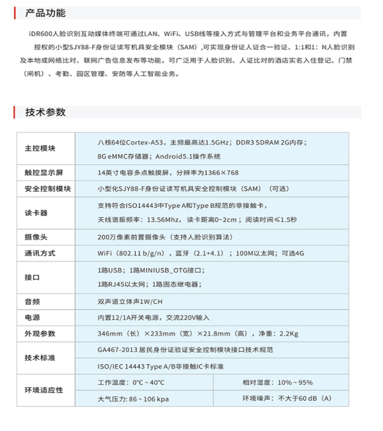 (*由于產(chǎn)品升級或其他原因,精倫IDR600人臉識別一體機(jī)產(chǎn)品實際參數(shù)有可能變更,以實際產(chǎn)品為準(zhǔn)。本文中的所有陳述、信息和建議也不構(gòu)成任何明示或暗示的擔(dān)保)